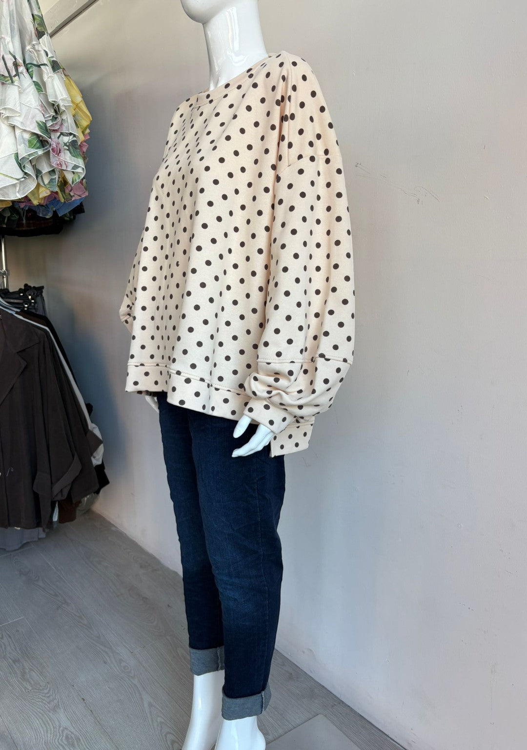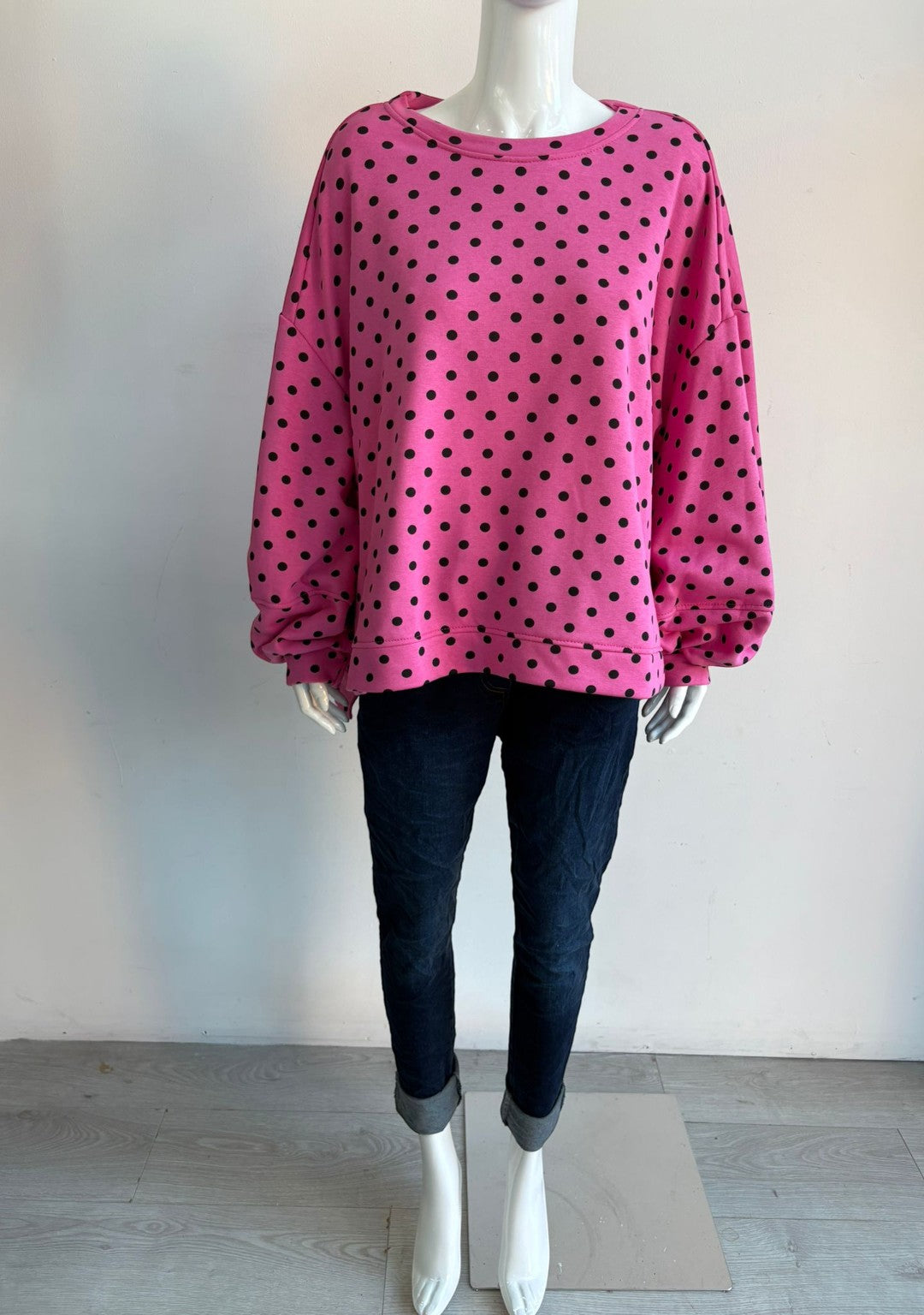 Made in Italy Balloon Sleeve Polka dot Sweat Top