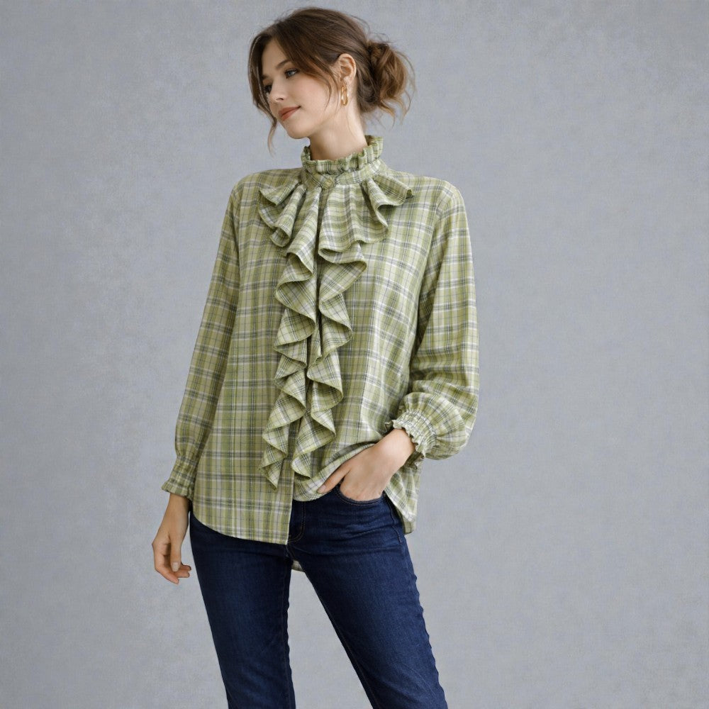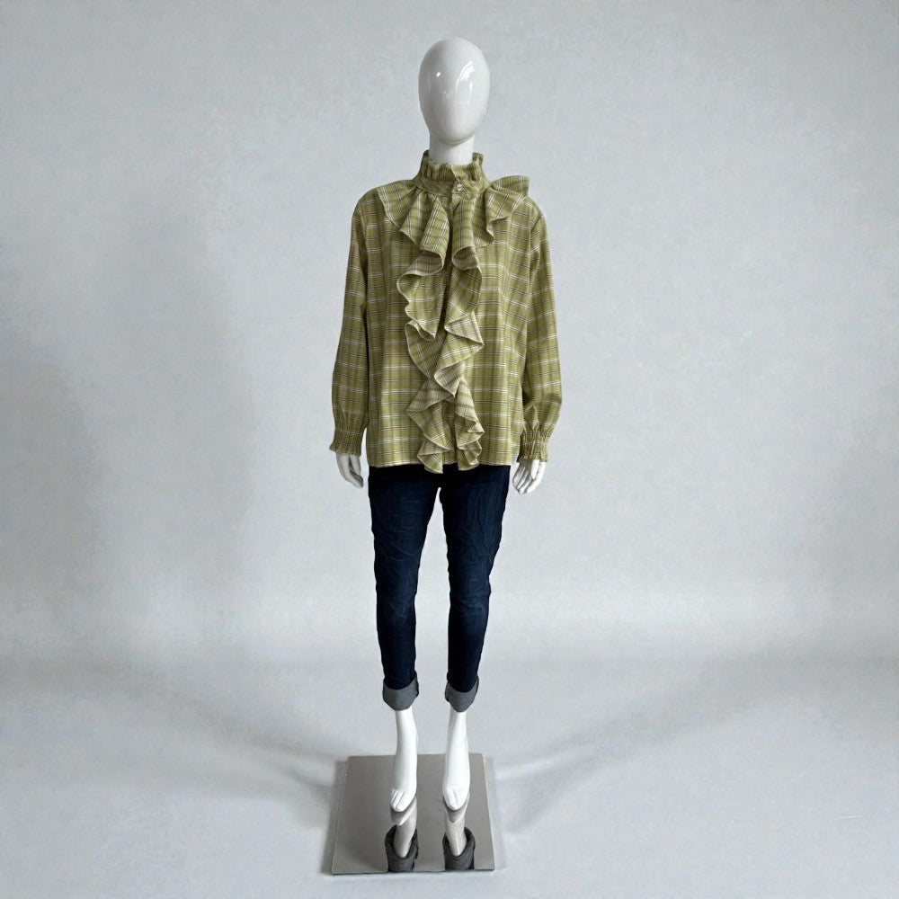 View compareMade in Italy Cotton Plaid Frill Blouse